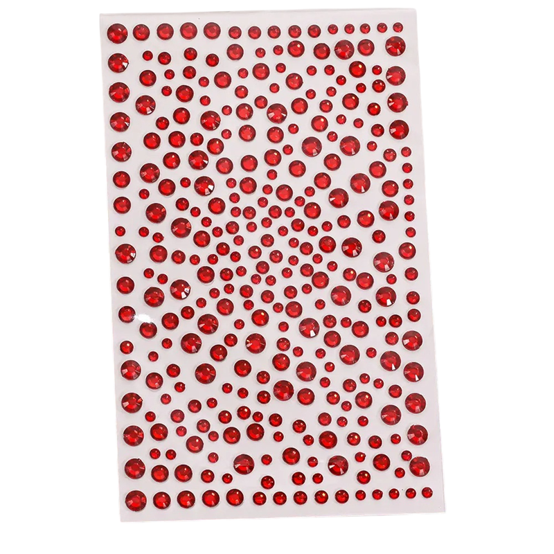 • Innehåll: 1 ark med självhäftande stenar för ansiktet i en mix av storlekar