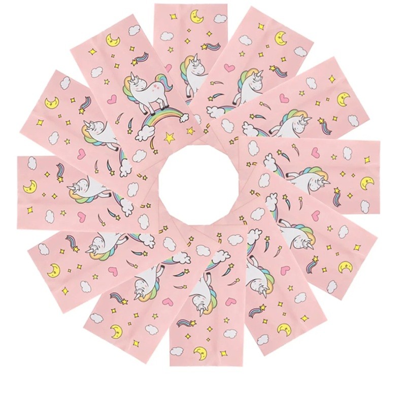 - Innehåll i förpackningen: 12 st rosa kraftpåsar med enhörningsmotiv