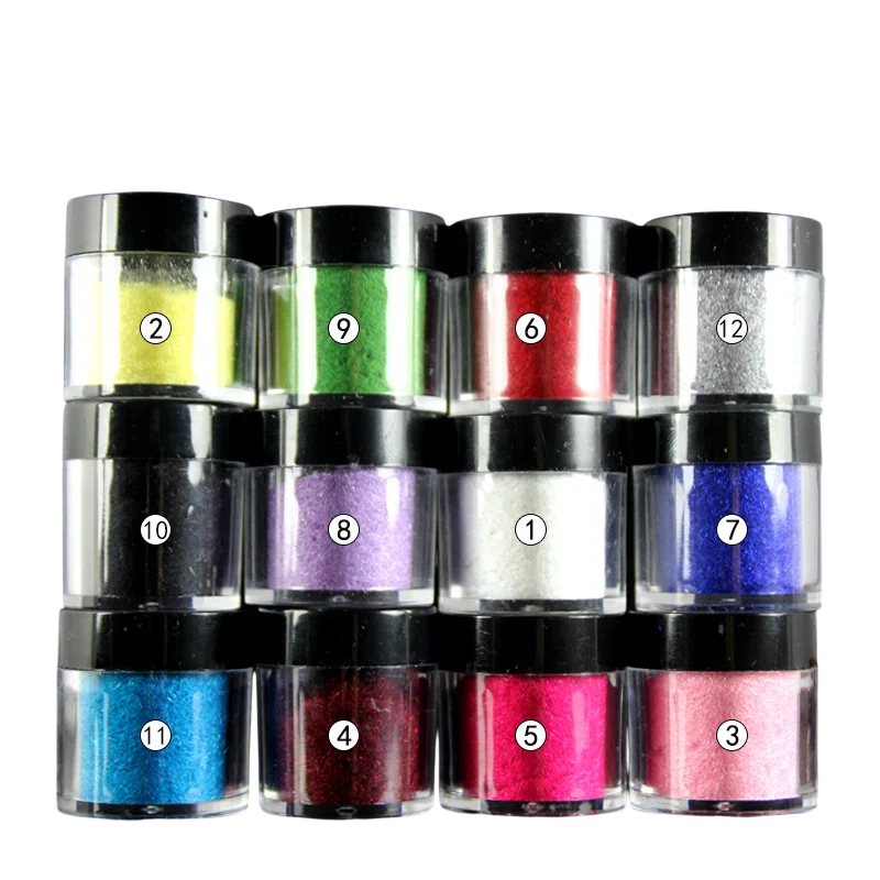 Startsida Startsida Hälsa och skönhet Naglar Akrylpulver för naglar 12 st Sammetspuder för naglar Färgglada och framträdande nyanser Fin pulver för manikyr Matt 3D-effekt Nail art dekorationer