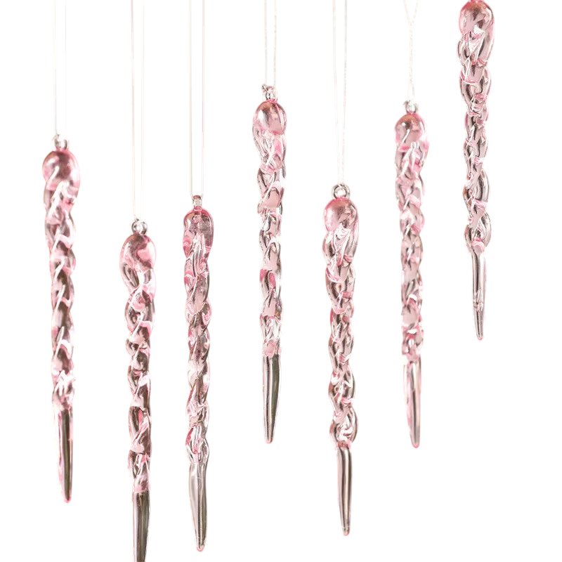 Denna uppsättning av isiga kristallistappar är det perfekta valet för att skapa en imponerande vinter- och juldekoration. Tack vare den smala formen och det genomskinliga utseendet påminner de om riktiga isiga kristaller som subtilt glittrar när ljuset faller på dem. Istapparna ger dekorationerna lätthet och elegans utan att kännas tunga eller överlastade. De passar utmärkt på julgranen, girlander, grenar eller hängande arrangemang. De är lämpliga både för hemmabruk och för festliga vinter- och julfester.