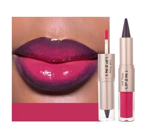 Denna praktiska kosmetiska produkt i 2i1 utförande erbjuder en enkel och effektiv lösning för vardagligt läppsmink. Den kombinerar matt läppstift på 3,5 g och färglöst plumping läppglans 2,5 g, vilket möjliggör lager-på-lager och anpassning av det slutliga utseendet efter behov. Läppstiftet ger läpparna en rik matt effekt, medan glanset framhäver deras form och ger visuell volym. Båda produkterna är utformade för att kunna användas separat eller tillsammans. Resultatet är ett välvårdat utseende på läpparna utan onödig tyngd.