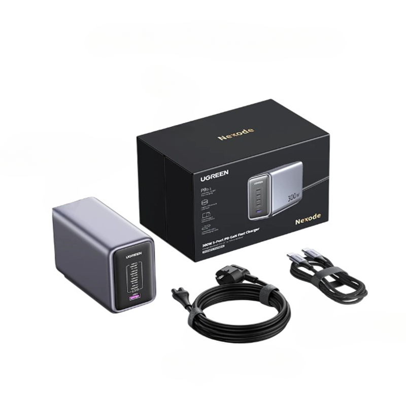 Kraftfull skrivbordsgan laddningsstation med stöd för PD3.1, intelligent effektstyrning och upp till 140 W per port för snabbladdning av bärbara datorer och mobila enheter. Fullständig beskrivning