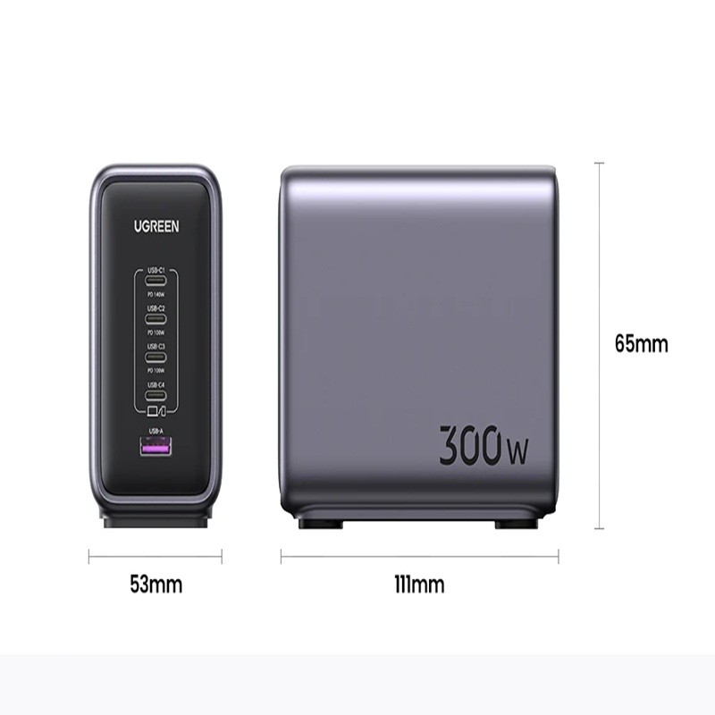 300W GaN skrivbordsladdningsstation 111 x 65 x 53 cm USB-C-laddare med 140 W effekt per port PD3.1 intelligent snabbladdning för MacBook och iPad