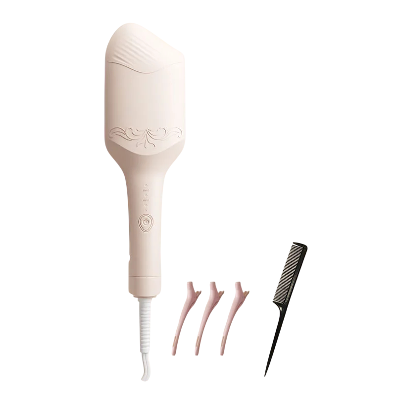Detta multifunktionella elektriska stylingverktyg kombinerar funktionen av en hårtork och flera hårmunstycken i en enhet. Det är avsett för hemmabruk och möjliggör torkning av hår, formning, utjämning och grundläggande volymjustering. Enheten fungerar på principen av varm eller ljummen luftflöde och är utrustad med jonfunktion. Tack vare de utbytbara munstyckena kan apparaten anpassas till olika sätt att styla hår. Strömförsörjningen sker genom anslutning till elnätet.