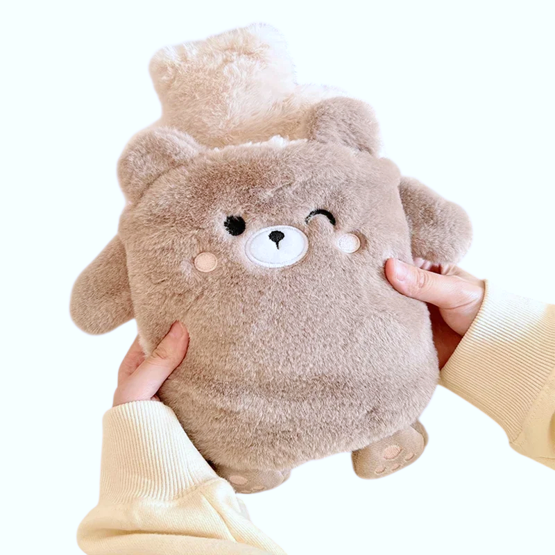 Mjuk plyschvärmare med söt nallebjörn lindrar mensvärk och värmer händer, fötter och mage hemma och på resan. Fullständig beskrivning