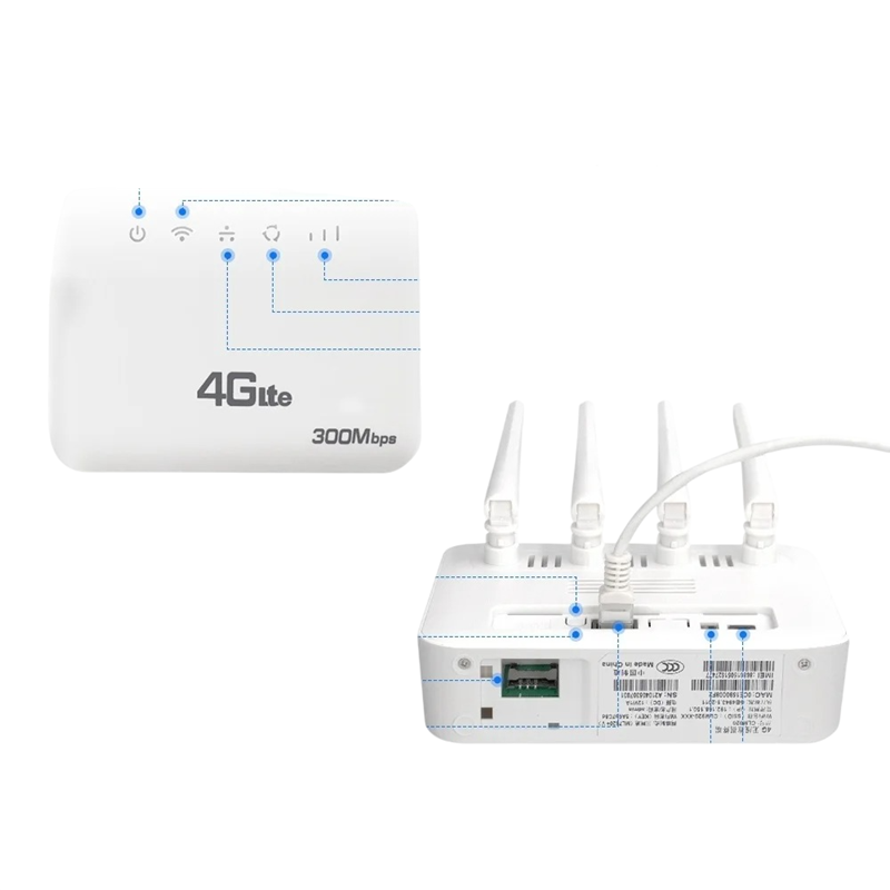 4G LTE WiFi-router med SIM-kort 300 Mb/s 2,4 GHz LAN-port IPv4 IPv6 vit mobilrouter för hemmanätverk delning av anslutning upp till 10 enheter