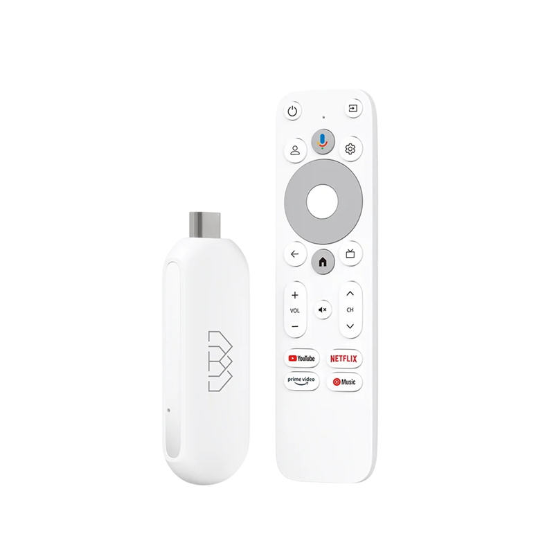 • Innehåll i förpackningen: TV Stick, Bluetooth röststyrd fjärrkontroll, HDMI-kabel, strömadapter (5V/1A)