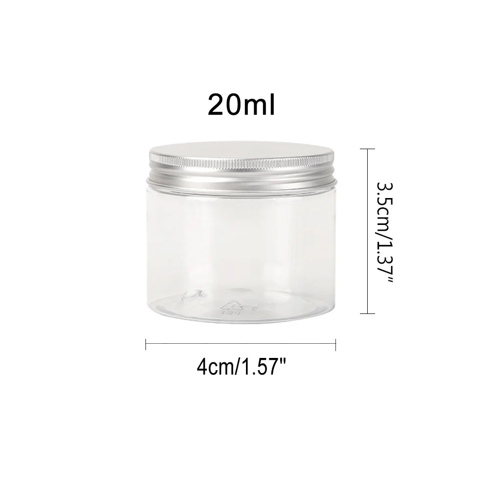5 st Kosmetisk plastbehållare med skruvlock i aluminium 20 ml 40 × 35 mm Transparent burk för kräm balsam salva reseförpackning
