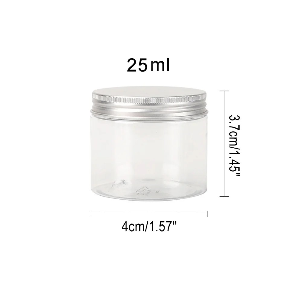 5 st Kosmetisk plastbehållare med skruvlock i aluminium 25 ml 40 × 37 mm Transparent burk för kräm balsam salva reseförpackning