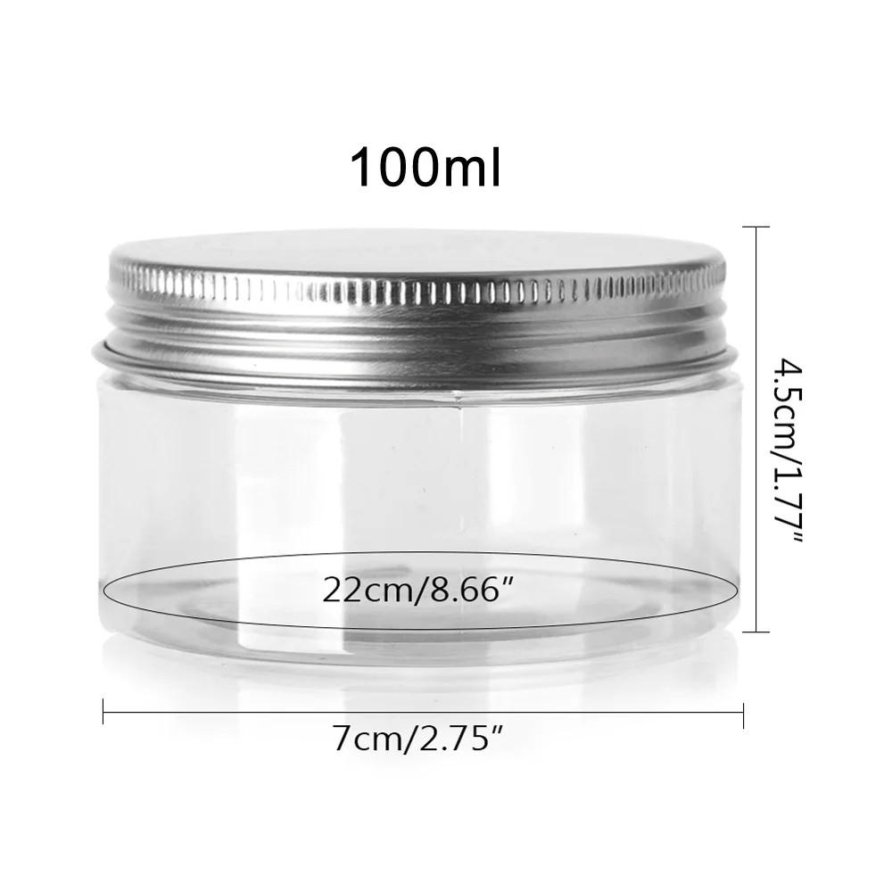 5 st plastisk kosmetisk behållare med aluminium skruvkork 100 ml 68 × 43 mm genomskinlig burk för kräm balsam salva förpackning