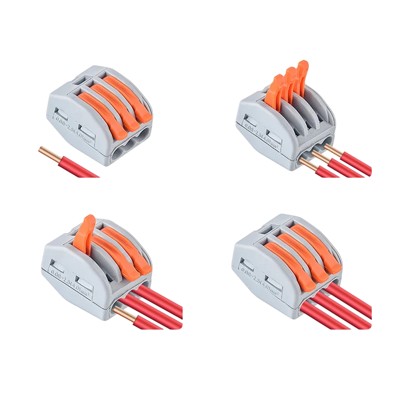 50 st 3-portars kopplingsplint för elektriska kablar 32A 450V 2,18 x 1,72 x 1,44 cm Snabb anslutning av ledningar PA plast Utan skruvar