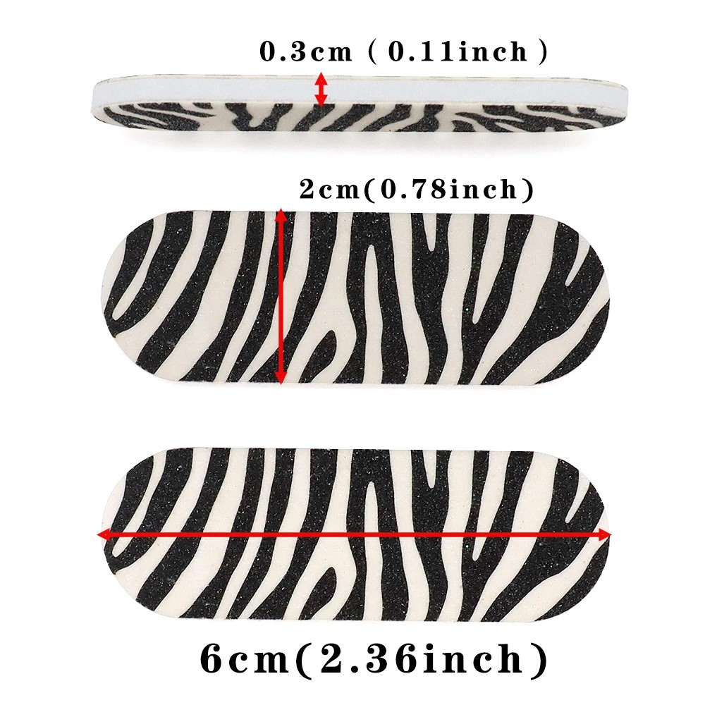 Designen med svartvitt zebramönster ger ett modernt och stiligt intryck. Mini-storleken möjliggör exakt kontroll vid förkortning och formning av naglar. EVA-kärnan ger nagelfilarna flexibilitet och komfort vid användning. De är lämpliga för vanlig manikyr och pedikyr.