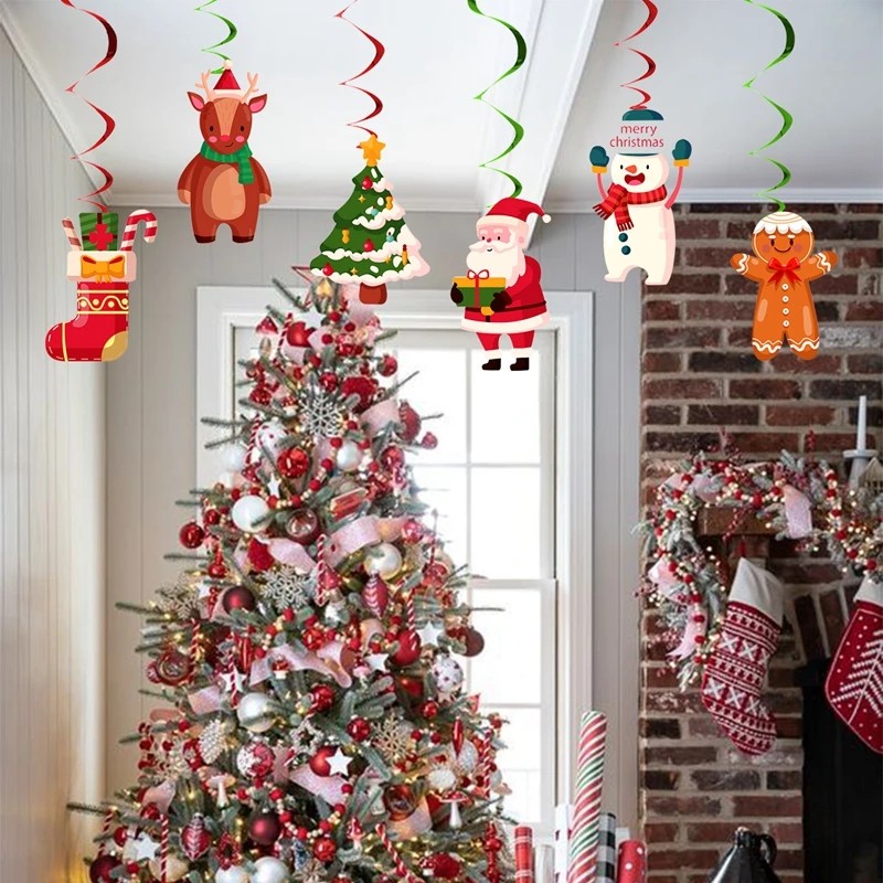 Startsida Startsida Hus och hushållsartiklar Dekorationer och hemtillbehör Juldekorationer 6 st Julspiralhängare 100 cm Hängande dekorationer med julmotiv Dekorativa spiraler för tak och fönster Festlig hängande dekoration
