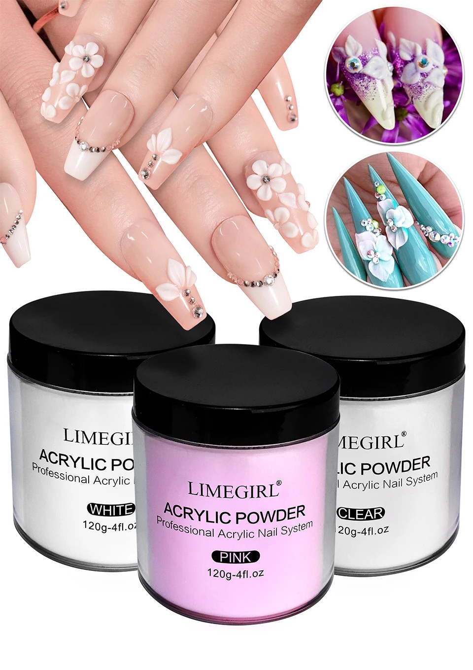 Akrylpulver för naglar 120 g Professionellt akryl Pink White Clear Förlängning och modellering av naglar Salong och hemmabruk
