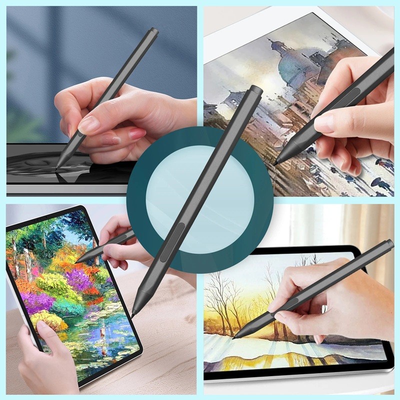 Aktivt pekfingerpenna 1024 nivåer av tryck för Microsoft Surface Pro Laptop Book Studio med handigenkänning Denna aktiva pekfingerpenna är designad för bekväm och exakt kontroll av tabletter och bärbara datorer i Microsoft Surface-serien vid anteckning, ritning och vanligt arbete. Den möjliggör smidig rörelse över skärmen och en naturlig känsla vid användning. Tack vare den lätta konstruktionen ligger den bra i handen och är lämplig för längre användning. Pennan är avsedd för daglig användning hemma, i skolan och på kontoret. Den fungerar som ett praktiskt tillbehör för pekskärmar på kompatibla enheter. Pennan har teknologi för handigenkänning som begränsar oönskade beröringar av handen på skärmen under skrivning eller ritning.
