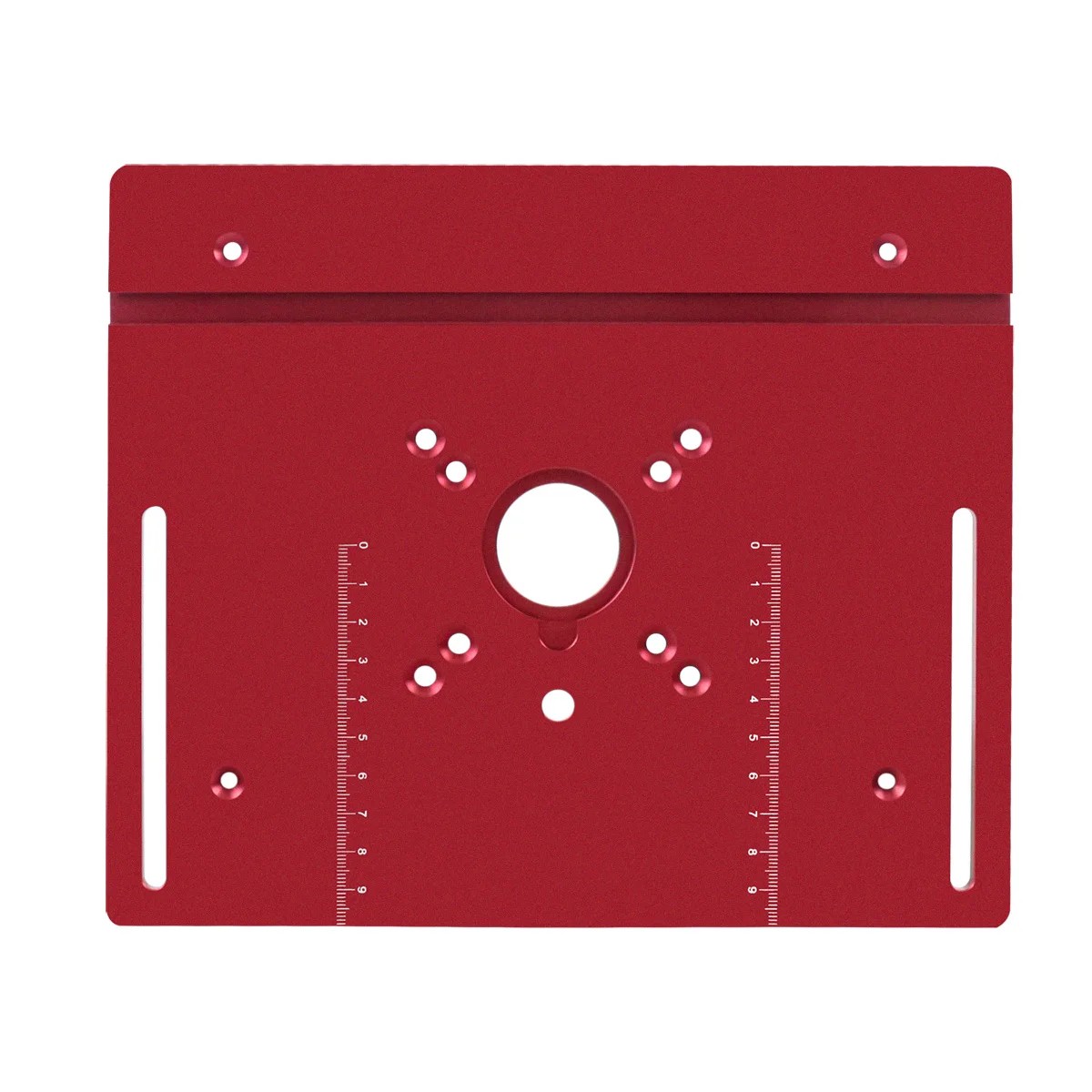 Plattan är tillverkad av CNC-bearbetad aluminiumlegering, vilket säkerställer hög hållfasthet, precision och lång livslängd. De totala måtten 240 x 200 x 5 mm ger tillräcklig arbetsyta samtidigt som den behåller en kompakt storlek. Precisionsbearbetade monteringshål med ett avstånd på 62 x 70 mm möjliggör kompatibilitet med vanliga överfräsar. Ytan på plattan är slät och möjliggör smidig materialförflyttning.