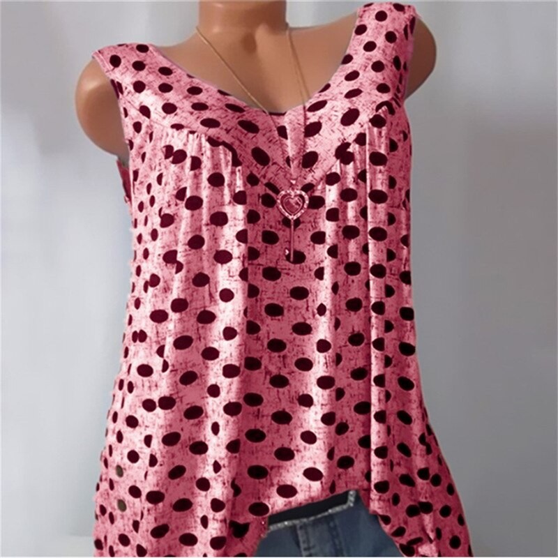 Ärmlös topp med prickiga damer