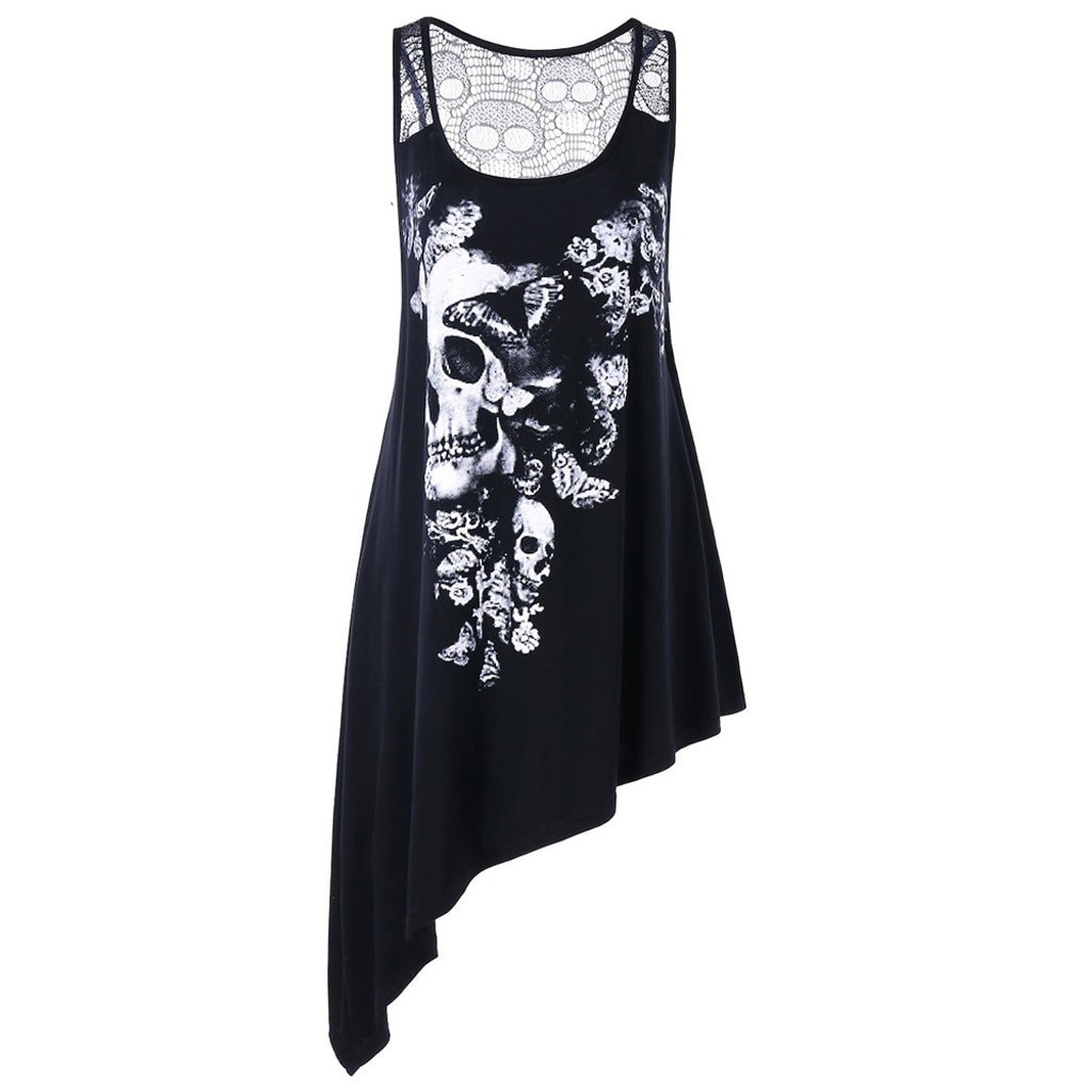 Startsida Startsida Kläder och accessoarer Damkläder Damlinnén Asymmetrisk linne för kvinnor med dödskalle