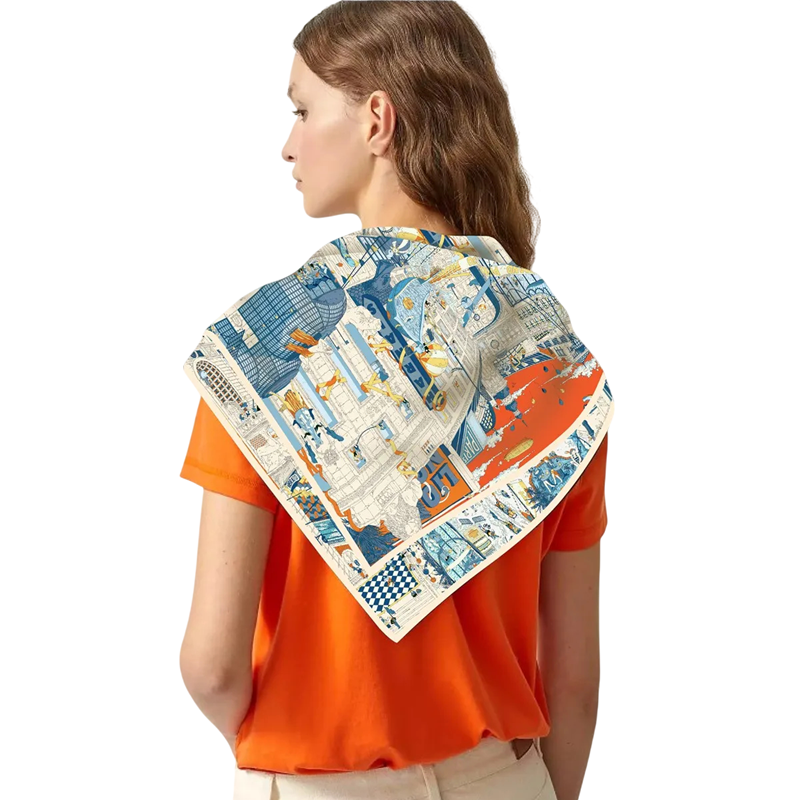Ateljé fyrkantig scarf Franska gatan Dam mode trend Multifunktionell scarf för huvud, hals och kropp Elegantisk design
