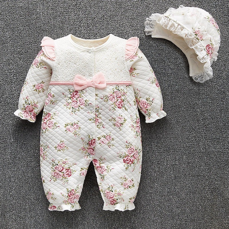 Baby flicka jumpsuit med hatt