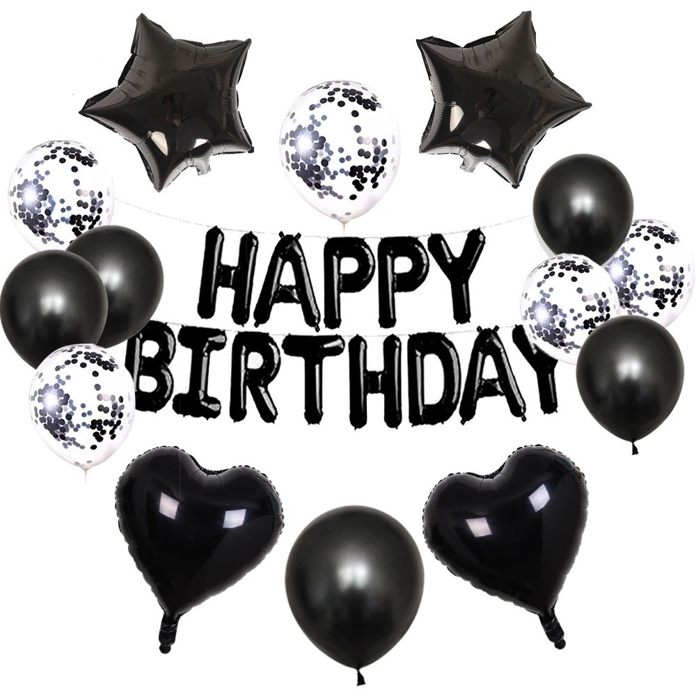 Ballongsats HAPPY BIRTHDAY 15 st svarta och vita ballonger med konfetti dekorativa folie- och latexballonger födelsedagsdekoration fest
