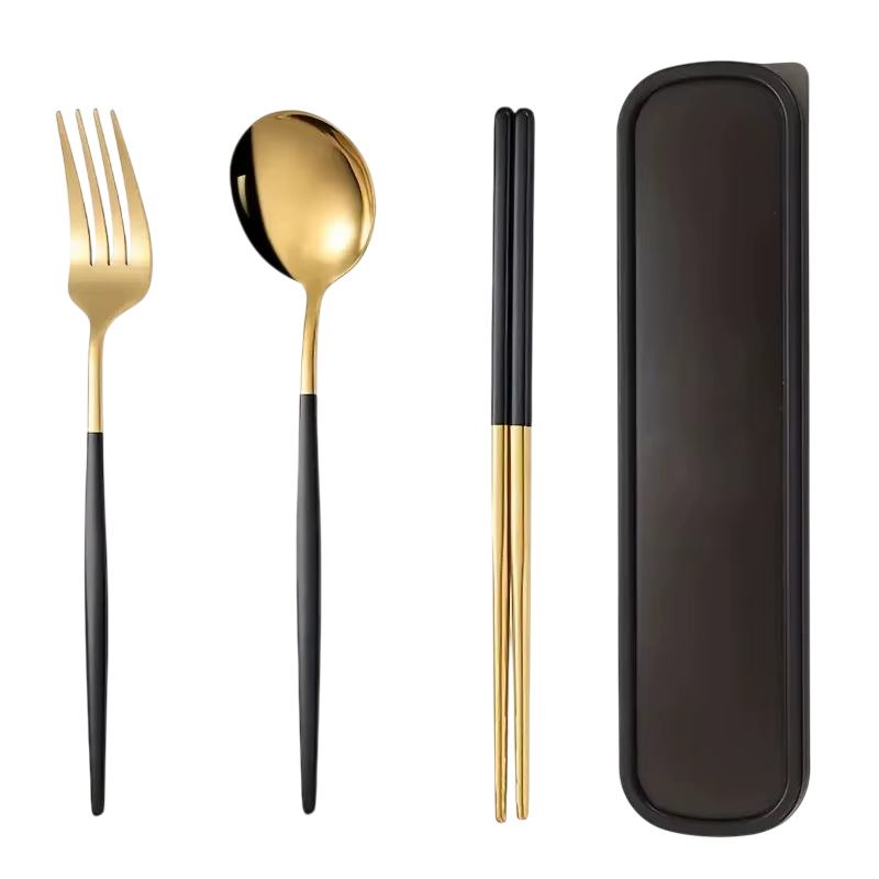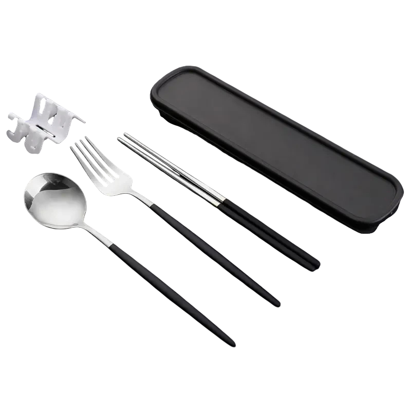 Om du letar efter praktiskt resebestickset som är kompakt, stiligt och lämpligt för daglig användning, är detta set med sked, gaffel och pinnar det perfekta valet.