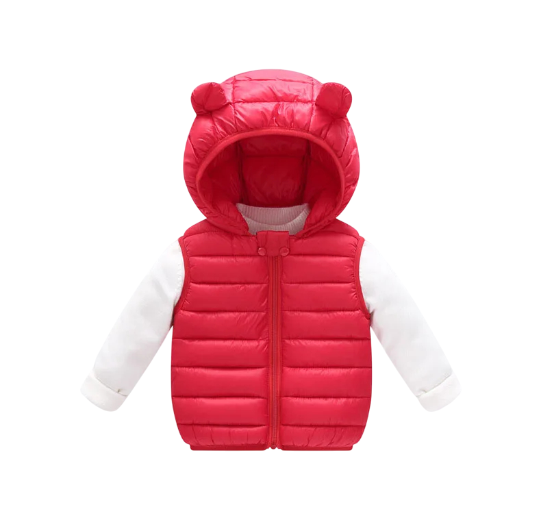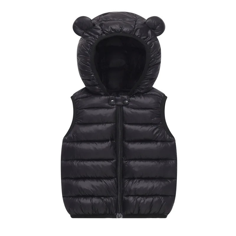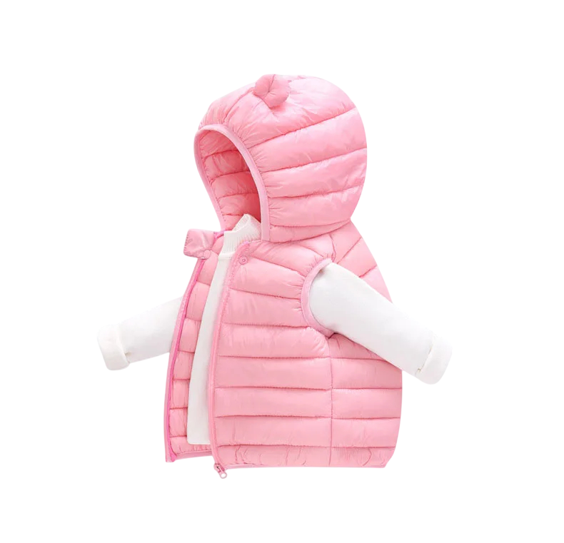 Barnens dunväst med huva och öron Höst- och vintervarm bomulljacka för småbarn och flickor Enfärgad väst med dragkedja av polyester och bomull