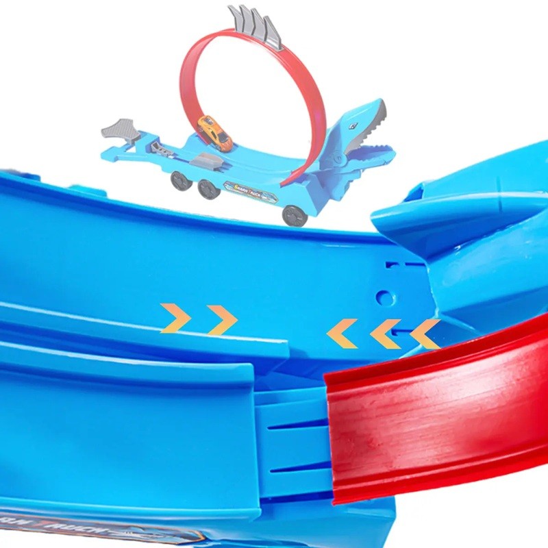 Startsida Startsida Allt för barn Leksaker för barn Bilar Barnens hajbilbana med 4 bilar, plast, slumpmässiga färger på bilar, rolig bana för barn
