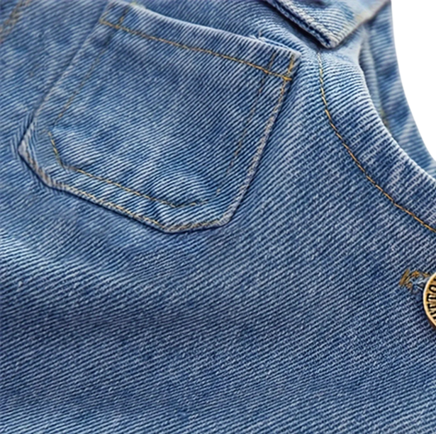 Praktiska fickor ger overallen både funktionella och modeinslag som både barn och föräldrar kommer att uppskatta. Jeansdesign och universell passform garanterar att denna overall passar till vilken t-shirt eller hoodie som helst. Tack vare bekvämt material, noggrant utförande, unisex-stil, lättskött och elegant utseende kommer den att bli en favorit i varje litet barns garderob.