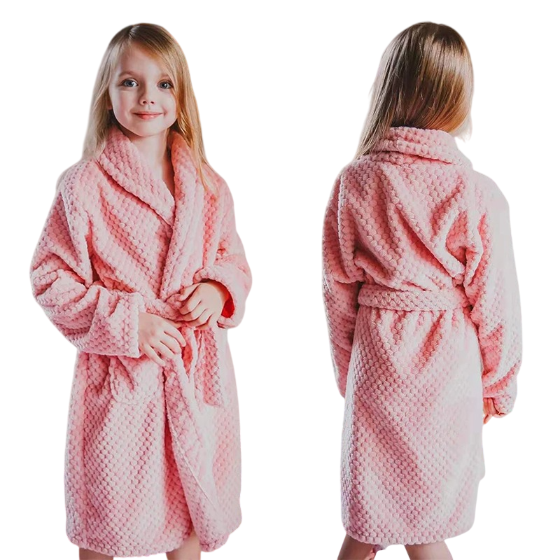 Startsida Startsida Allt för barn Hjälpmedel för mammor Hjälpmedel för barnbad Barnens plyschbadrock unisex Med snörning Rosa barnbadrock med körsbär i bomull och polyester för komfort
