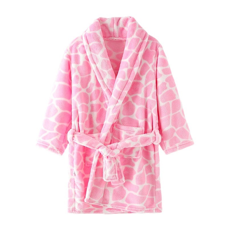 Startsida Startsida Allt för barn Hjälpmedel för mammor Hjälpmedel för barnbad Barnens plyschbadrock unisex med snörning Vit barnbadrock med rosa prickar i bomull och polyester