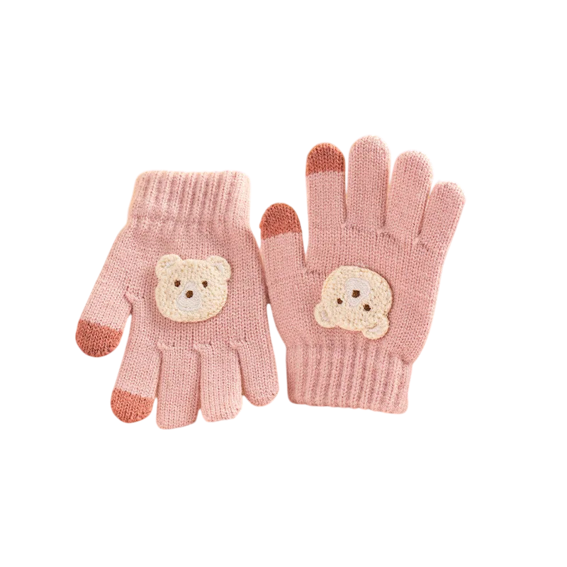Startsida Startsida Kläder och accessoarer Barnkläder Barnaccessoarer Barnhandskar Barn fingervantar Barnens stickade vantar Storlek 2–6 år Mönster av en björn Värmande vintervantar för barn för utomhusbruk