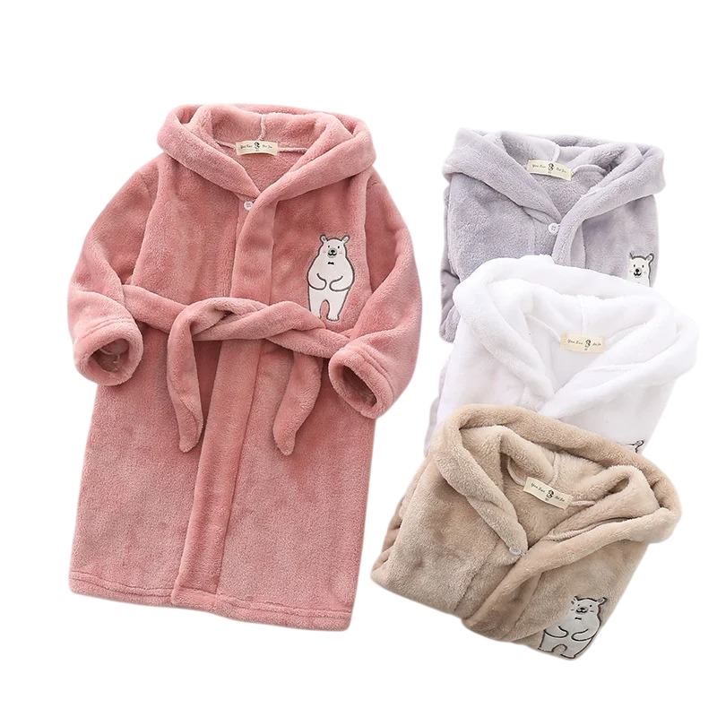 Startsida Startsida Allt för barn Hjälpmedel för mammor Hjälpmedel för barnbad Barnens unisex morgonrock i plysch med snörning i polyester och bomull enfärgad med tryck av björn mjuk morgonrock