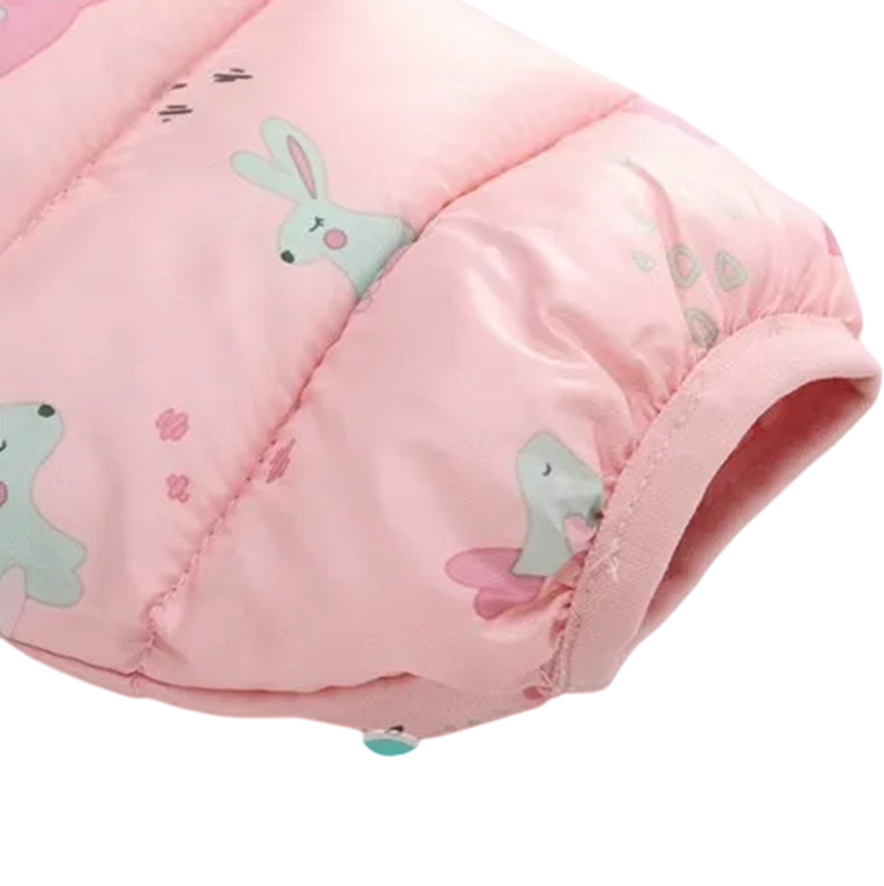 Varm barnens vinterjacka med huva, glada djurmotiv och dubbel stängning. Polyesterstoffet säkerställer värme, komfort och hållbarhet under vintern. Fullständig beskrivning