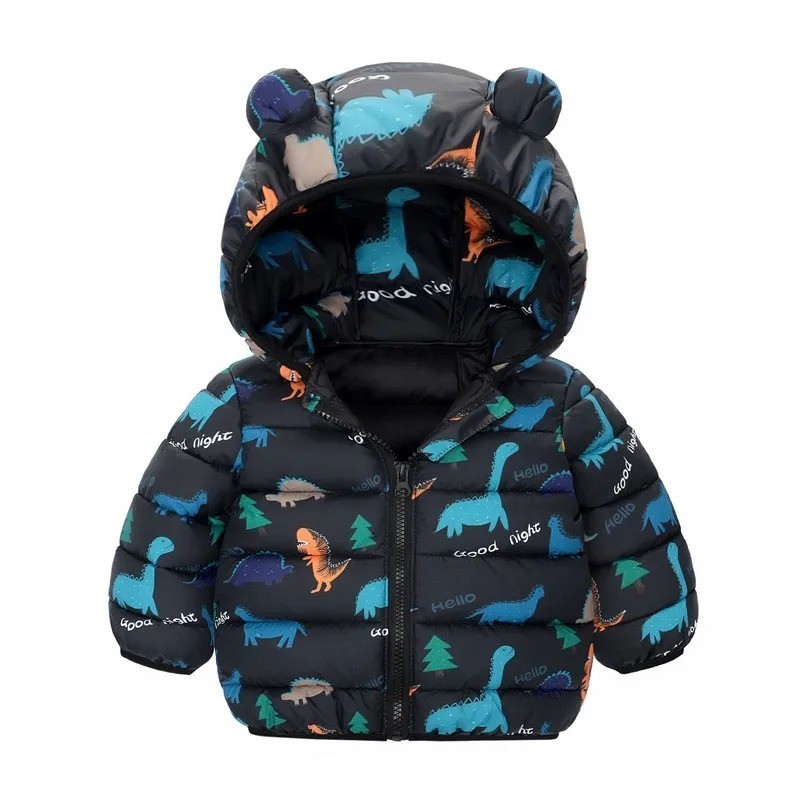 Värmande barnens vinterjacka med huva och öron, mjuk polyester och dragkedja. Unisex design perfekt för vintern och vardagsbruk. Fullständig beskrivning