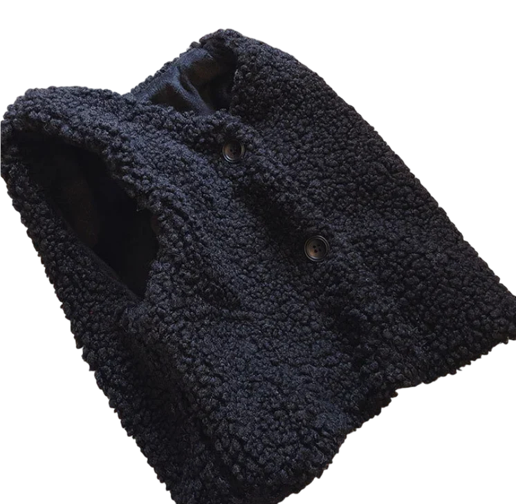 Barnens vinterväst i lamull med V-ringning Enfärgad plyschväst med knäppning Varm höstkappa för pojkar och flickor Sametutförande