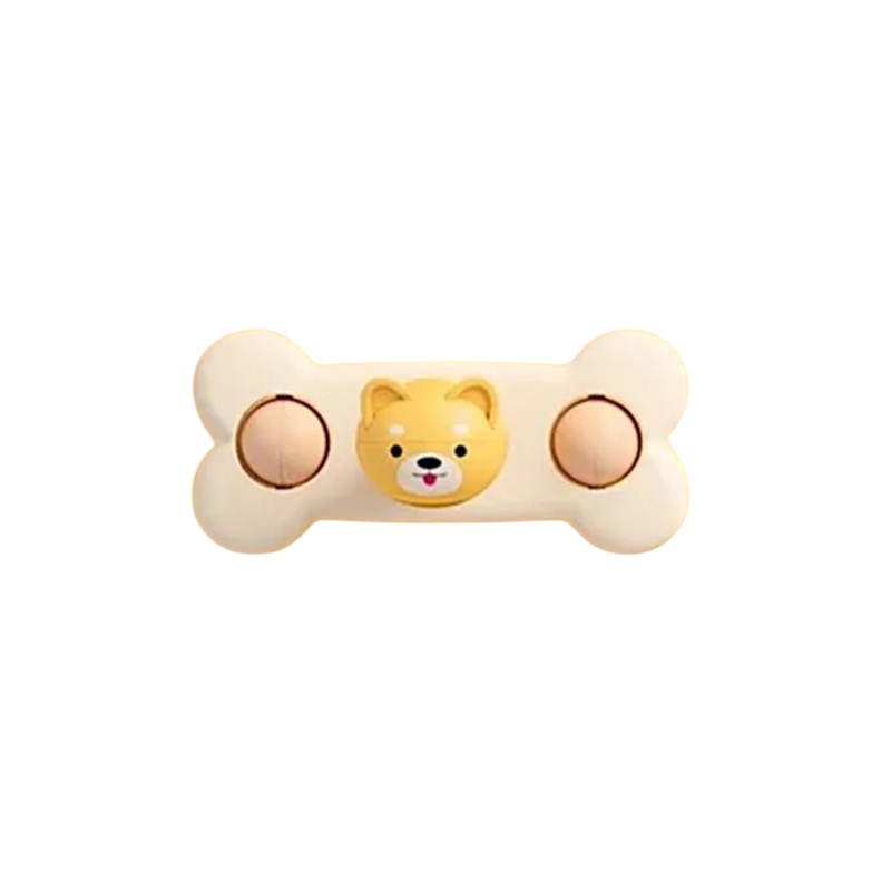 Denna lugna barnleksak med valp och ben är den perfekta hjälpen för små barn som behöver sysselsätta sina händer, lugna sina känslor och koncentrera sig under lek. Tack vare den fasta sugproppen kan leksaken enkelt fästas på släta ytor som bord, stolar, golv, plastskivor eller kakel. Storleken 10,5 cm är anpassad för små barnhänder och möjliggör ett bekvämt grepp och enkel hantering. Barn kan vrida, trycka eller vibrera leksaken, vilket naturligt utvecklar finmotorik, uppmärksamhet, hand-öga koordination och lär dem samtidigt tålamod. Motiv av valpen som håller ett ben skapar en positiv visuell stimulans som stödjer fantasi och sinnesintryck.