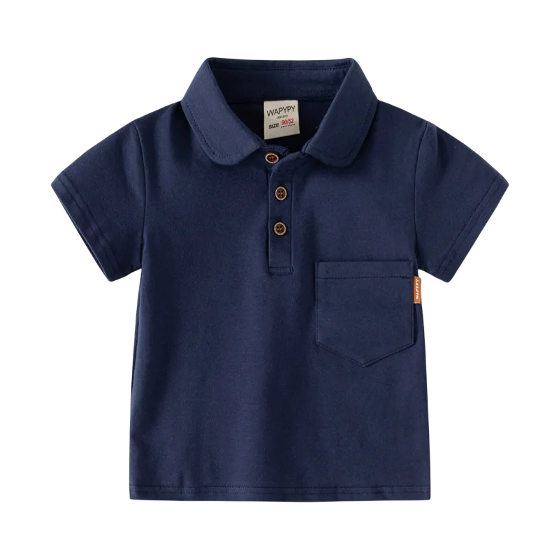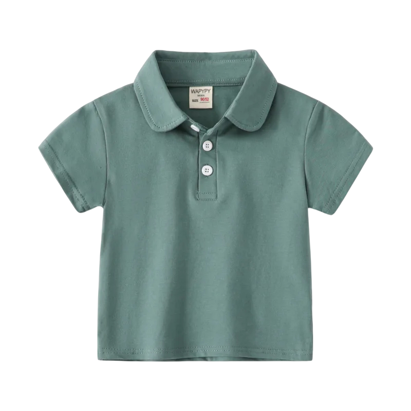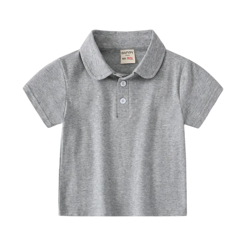 Stilren bomullspolo för pojkar med krage och knappar. Bekväm passform, högkvalitativt material, perfekt för sommaren, skolan och fritiden. Fullständig beskrivning