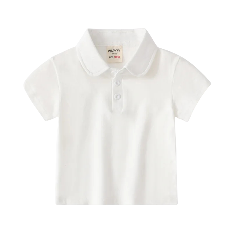 Barnpojks polo med krage och knappar Kort ärm Bomullströja med krage