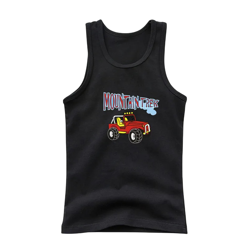 Barns bomullstopp med traktortryck Enfärgad ärmlös t-shirt med O-hals Sommartopp för pojkar och flickor Bekväm i olika färger