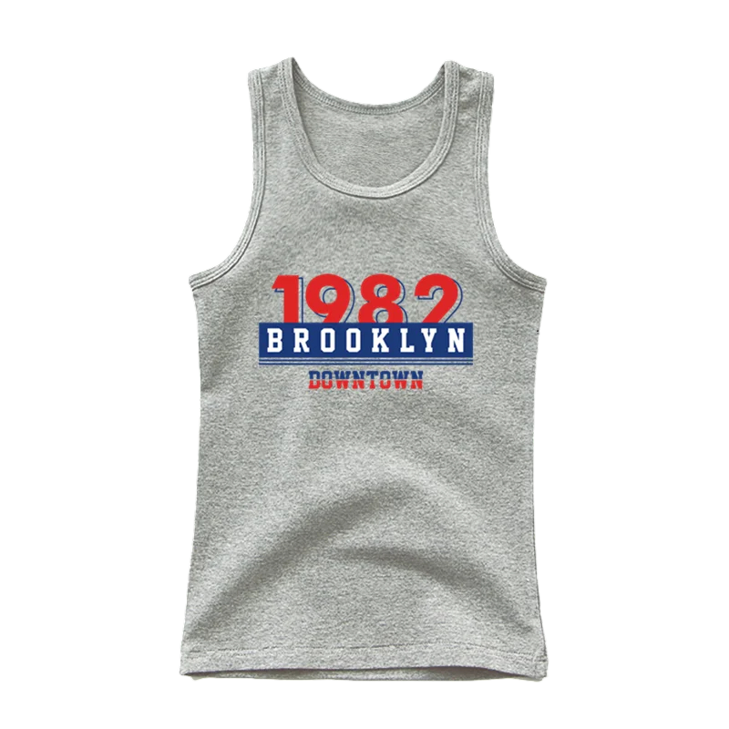 Barns bomullstopp med tryck 1982 Brooklyn Enfärgad ärmlös tröja med O-ringning Stilig sommartopp för pojkar och flickor Olika färger