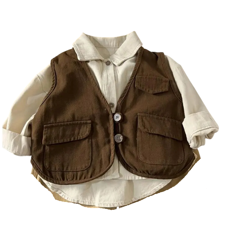 Denna koreanska barntröja med långa ärmar är den perfekta plagg för vår- och höstsäsongen 2024. Tillverkad av en kombination av bomull och polyester, ger den en perfekt balans mellan mjukhet, andningsförmåga och hållbarhet. Tack vare den eleganta kragen, knäppningen med knappar och praktiska fickor är det en mångsidig modell som kan bäras som tröja eller lätt cardigan. Den enfärgade designen i flera varianter gör det enkelt att kombinera med andra plagg i barnens garderob.