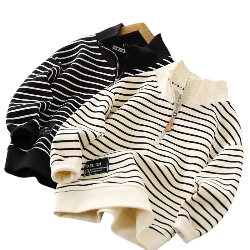 Barns randiga tröja med hög hals och halv dragkedja Bomull och polyester Sporttröja för pojkar och flickor Höstlös passform Olika färger