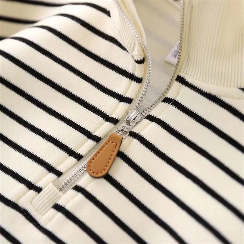 Startsida Startsida Kläder och accessoarer Barnkläder Flickkläder Flickhoodies Barns randiga tröja med hög hals och halv dragkedja Bomull och polyester Sporttröja för pojkar och flickor Höstlös passform Olika färger