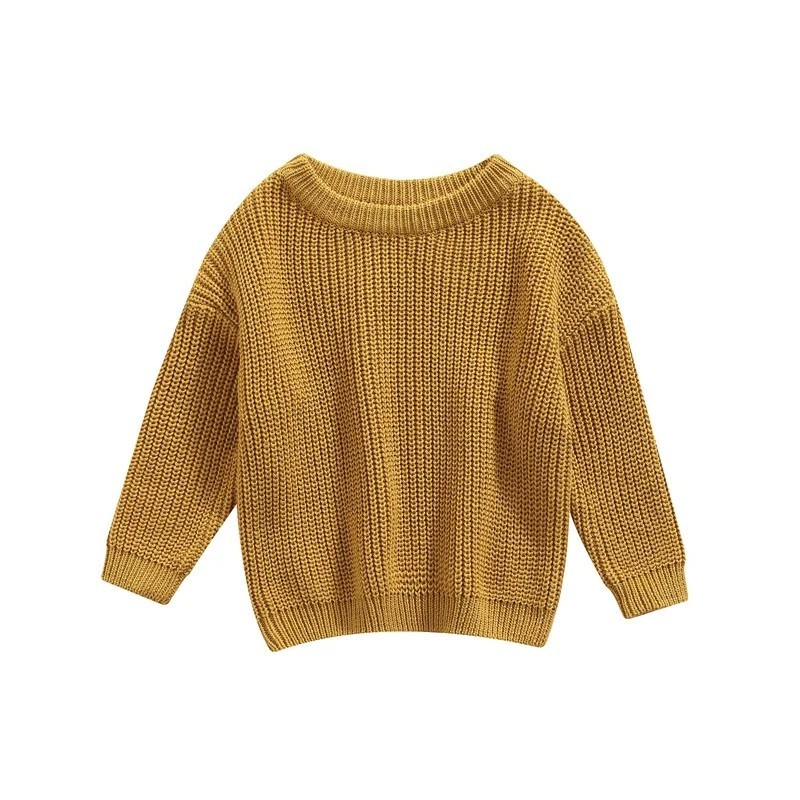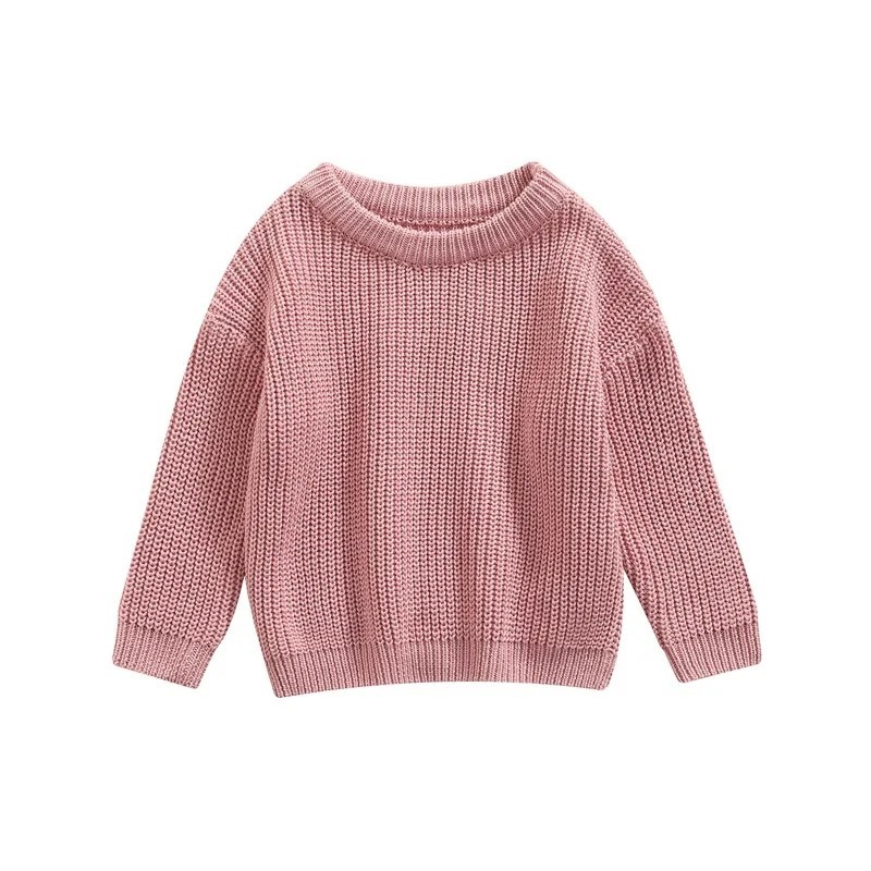 Barns stickade tröja för spädbarn Höst- och vinterlös topp med långa ärmar Enfärgad akryl- och bomullströja för flickor och pojkar
