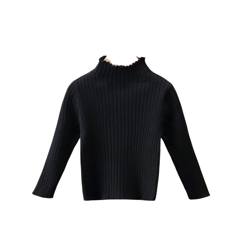 Mjuk barntröja med hög krage i bomull och viskos. Värmande, elastisk och bekväm stickad topp för spädbarn, pojkar och flickor i kallt väder. Fullständig beskrivning