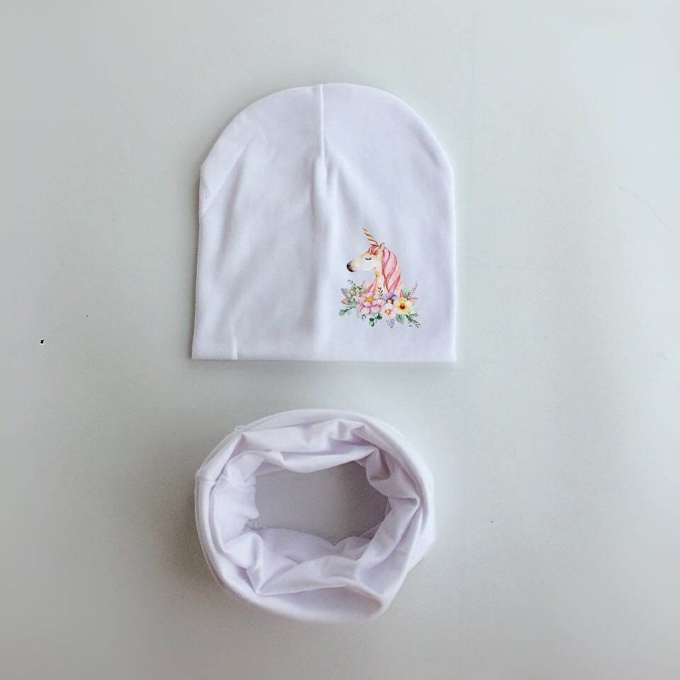 Barnuppsättning av hatt och halsduk med enhörning