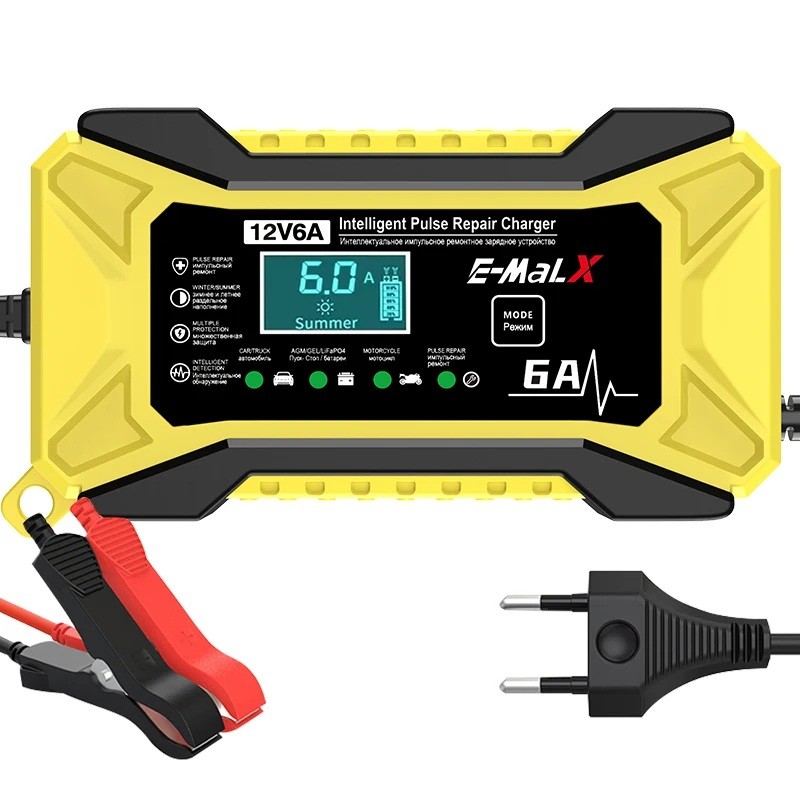 Kompakt intelligent batteriladdare 12 V med laddström 6 A är idealisk för snabb, säker och skonsam laddning av de flesta bil- och motorcykelbatterier med kapacitet 2–100 Ah.