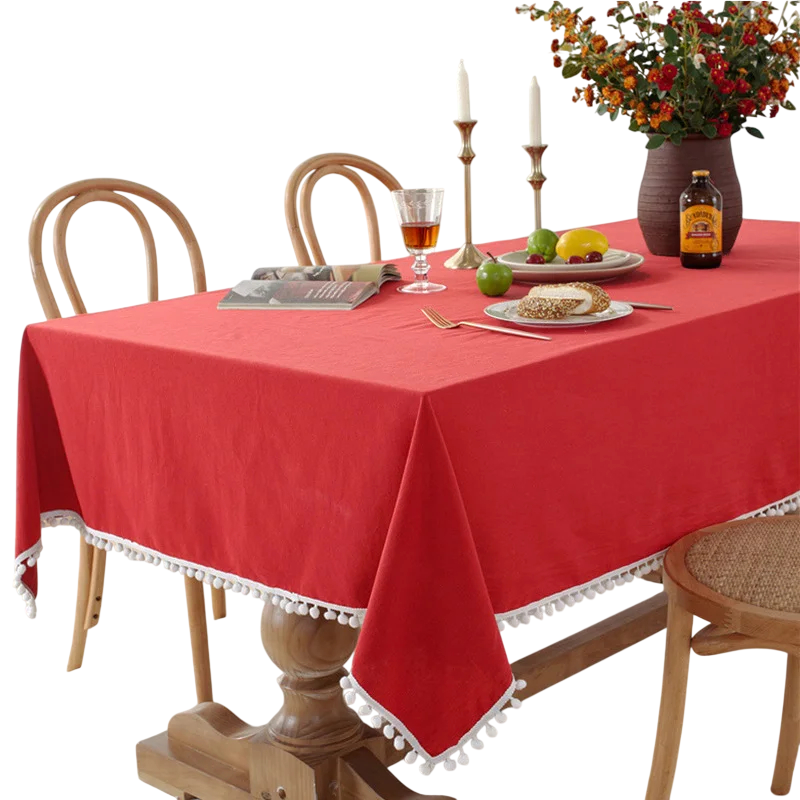 Bavlnaduk 140 × 200 cm med dekorativa kulprydnader Tvättbar sydd duk för matbord för bröllopsfest, fest, bankett