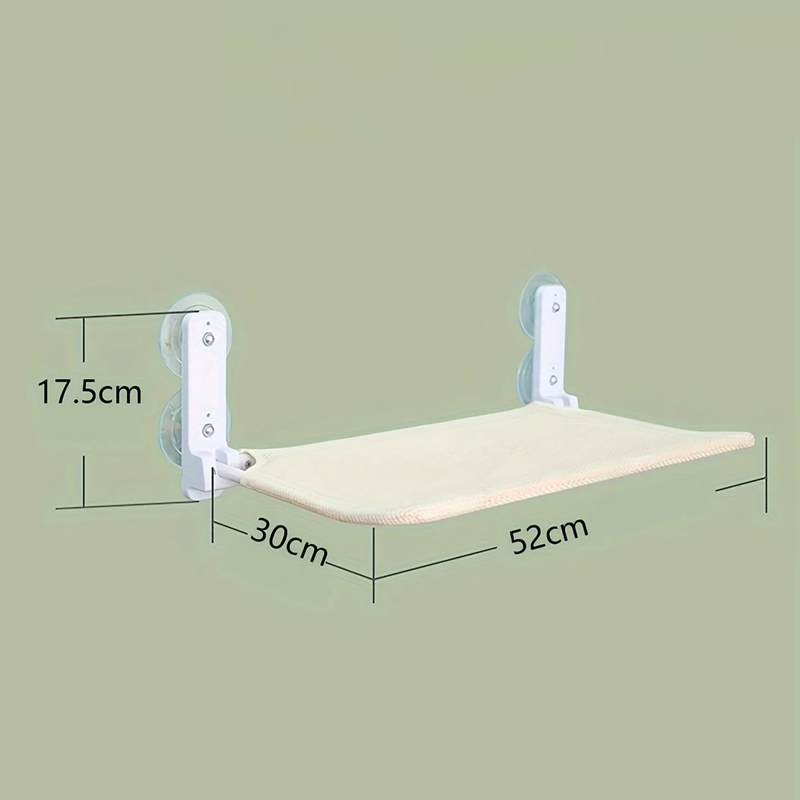 Beige kattbädd med sugkoppar för fönster 30 x 52 cm Vila plattform vid fönster Hängande kattbädd för lägenhet Lämplig för glas och kakel
